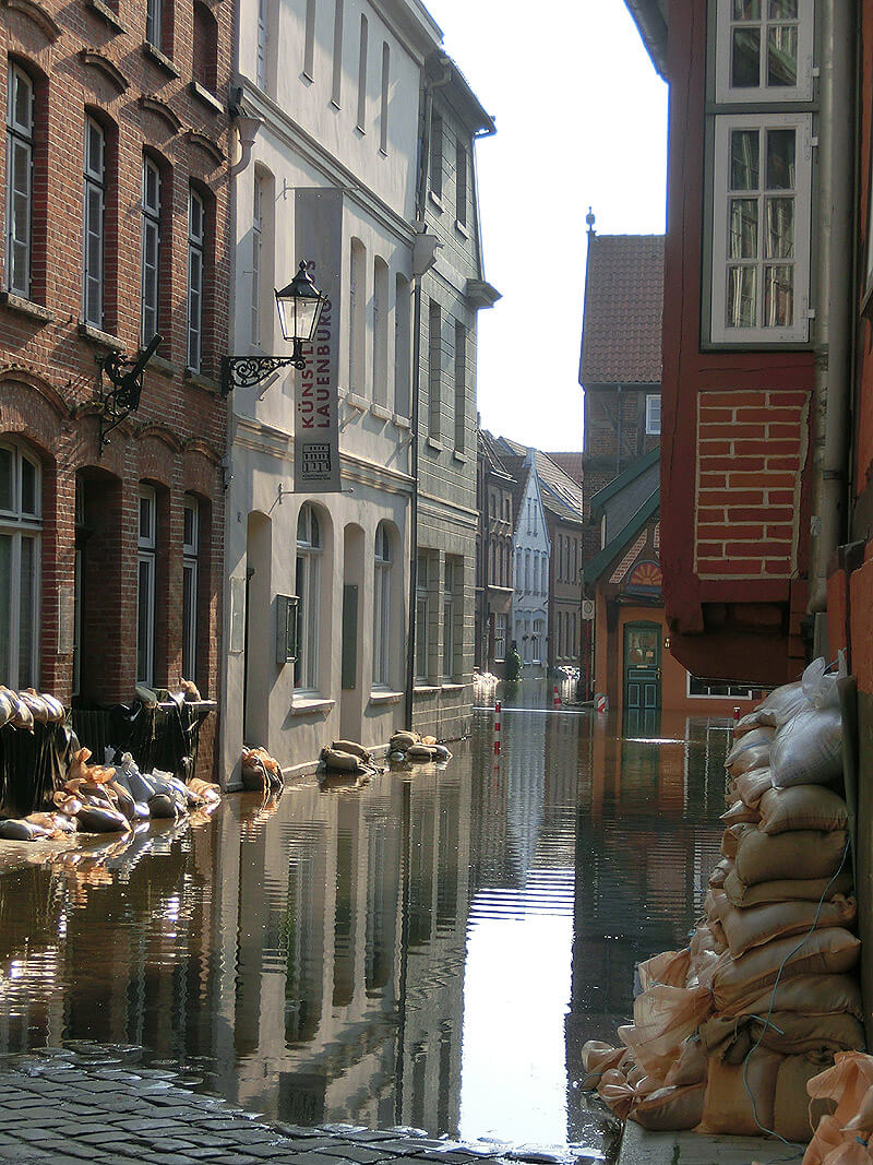 Elbaufwärts in Fischbeck war ein Deich gebrochen und das Wasser hat ein großes Wohngebiet überflutet. Nur dadurch stieg die Elbe in Lauenburg nicht weiter. So eng liege Glück und Unglück beieinander.