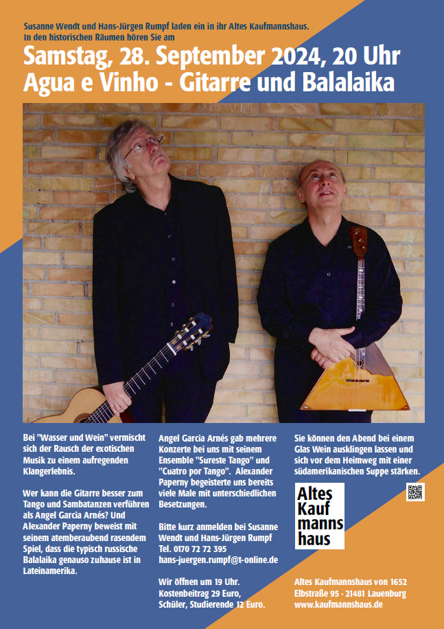 Agua e Vinho – Gitarre und Balalaika+ Zu Google Kalender hinzufügen+ iCal / Outlook exportieren Datum28. September 2024Abgelaufen! Uhrzeit 20:00 Weitere InformationenMehr lesenStandort Altes Kaufmannshaus von 1652Elbstraße 95, Lauenburg Webseite http://www.kaufmannshaus.de Kategorie Musik