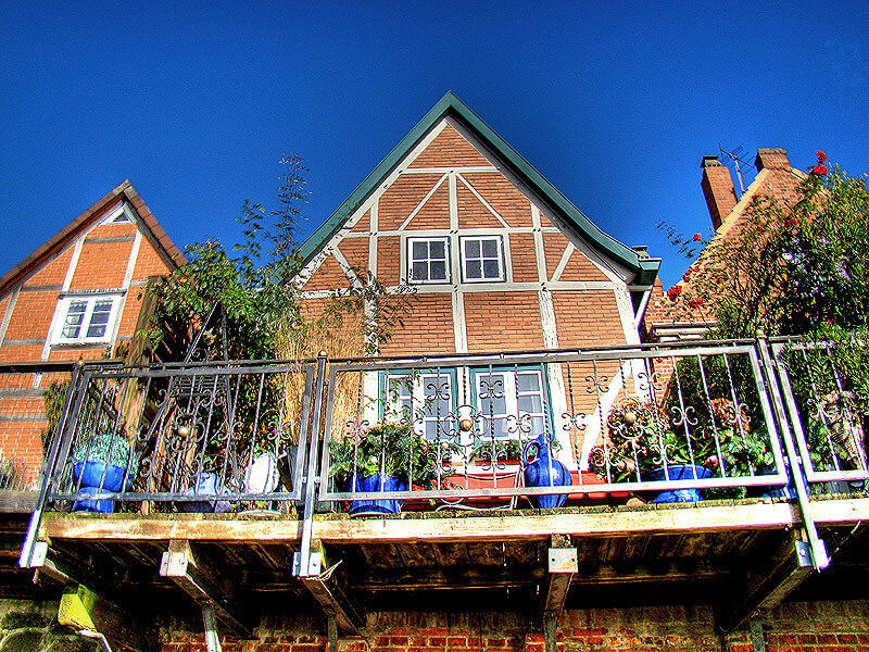 Belohnt werden Sie auf dem Weg über die Promenade von sehr liebevoll restaurierten Fachwerkhäusern, die auf mächtigen Felsmauern thronen. Die Mauern bieten Schutz vor dem Wasser, dass immer wieder auch die Uferpromenade überflutet.