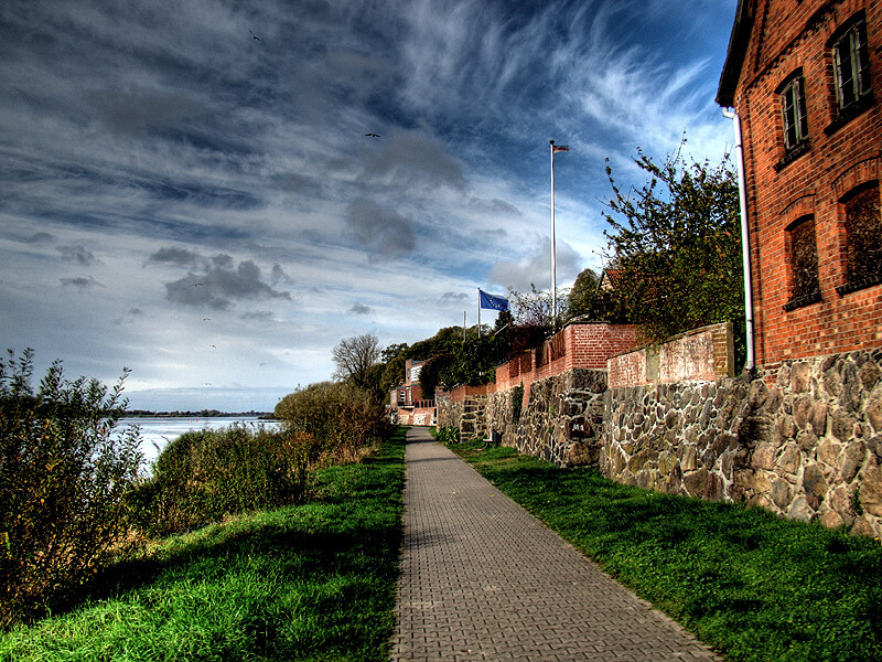 Ab hier ist der Weg bautechnisch einwandfrei. Rechte Hand kommen Sie vorbei ab der Zündholzfabrik. Hier befindet sich heute eine wunderbar ausgestattete Jugendherberge, die auch für große Gruppe günstige Übernachtungsmöglichkeiten bietet - und das mit unverbautem Blick auf das Wasser.